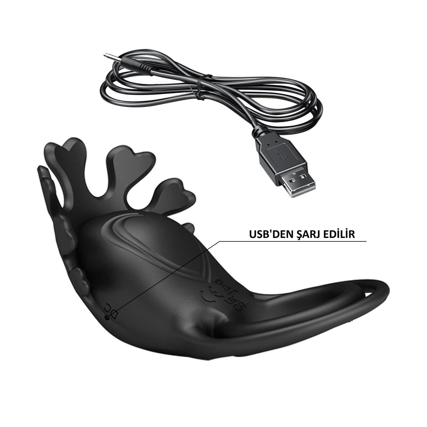 USB Şarjlı Klitoris Uyarıcılı Güçlü Titreşimli Siyah Silikon Penis Halkası - Ruben